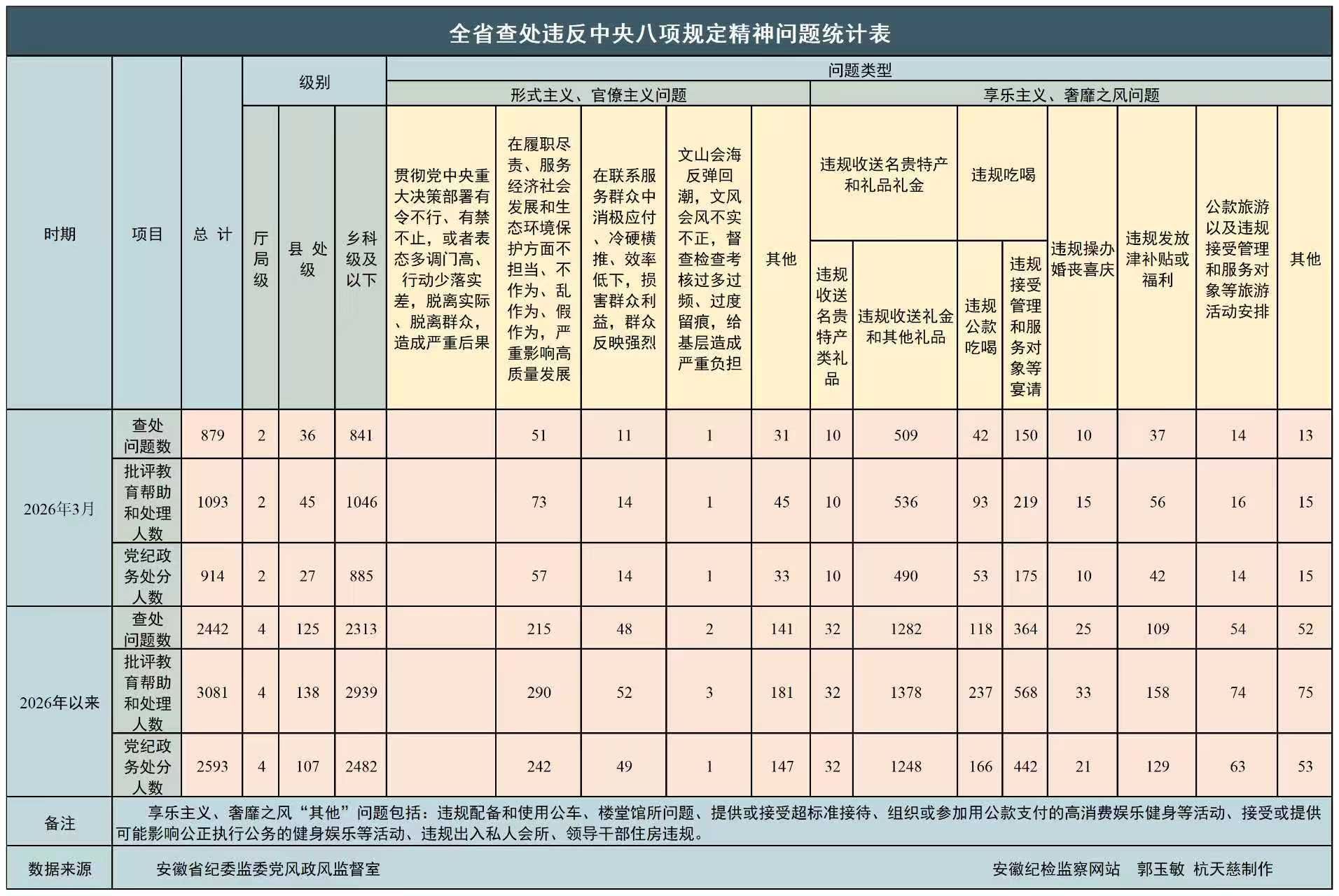 2026年一季度全省查處違反中央八項(xiàng)規(guī)定精神問題統(tǒng)計(jì)指標(biāo)表