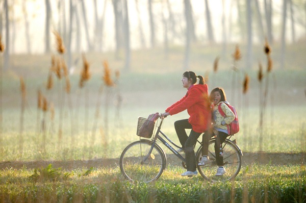 姊妹情深,相依相伴。放學路上,夕陽、麥浪、自行車、小鳥……奏響田園“交響曲”。