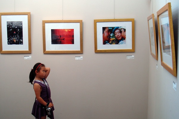 認真研習,筑夢未來。攝影展覽館內,小女孩撓頭沉思,神情專注的凝視著一副攝影作品,分析拍攝手法。